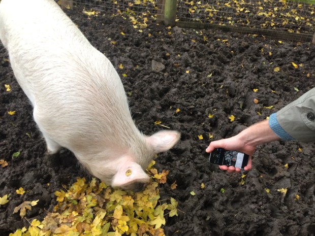 We were recording the sound the pig was making snuffling among his leaves with our phones because it was such an incredible noise!