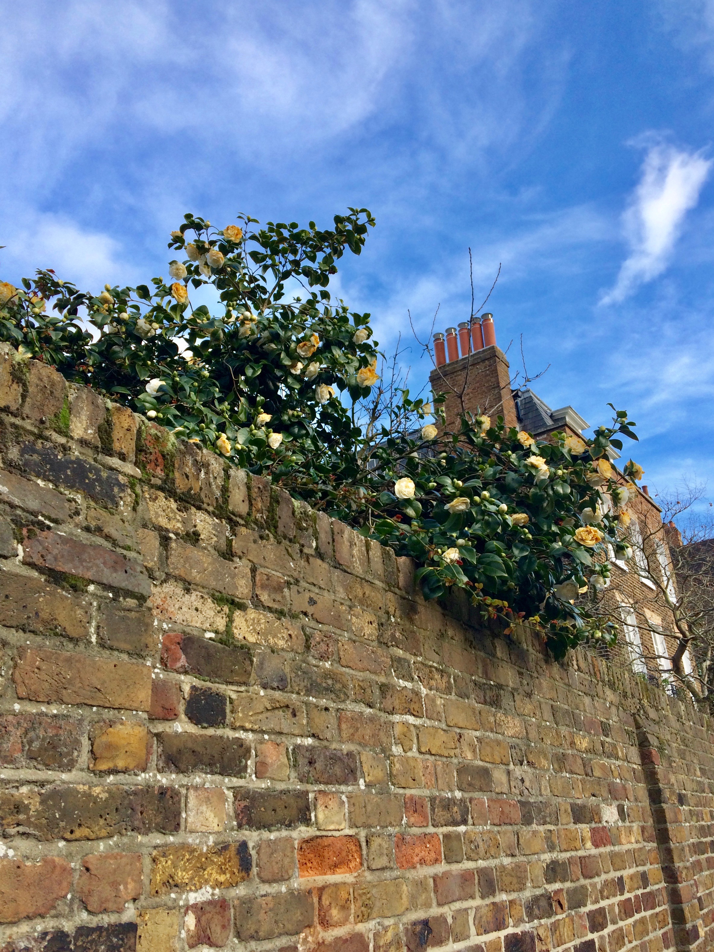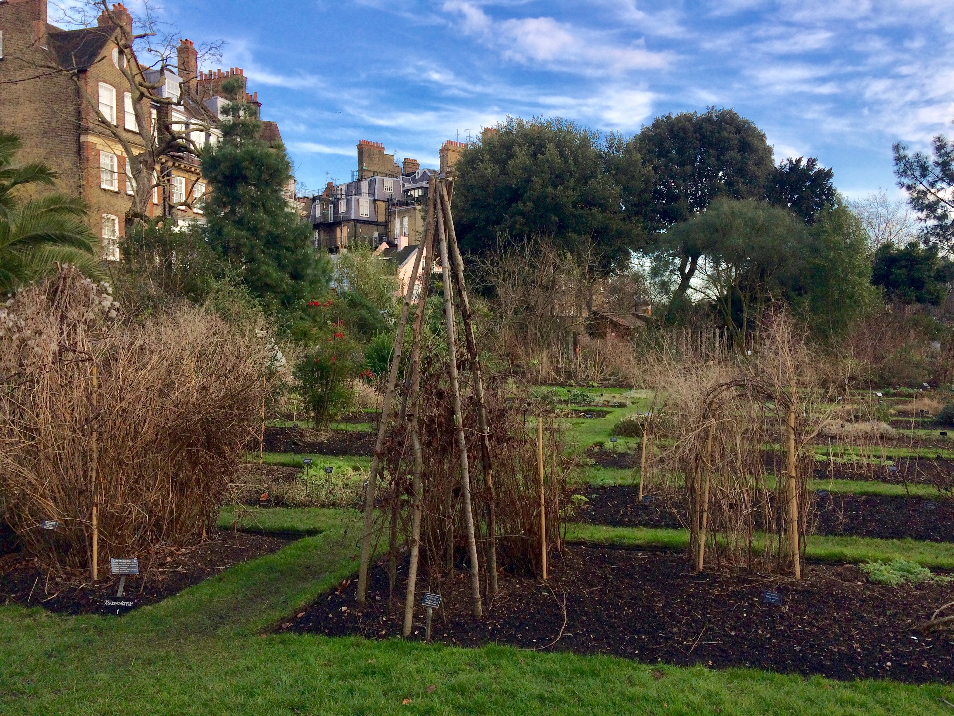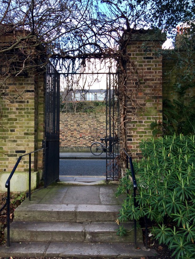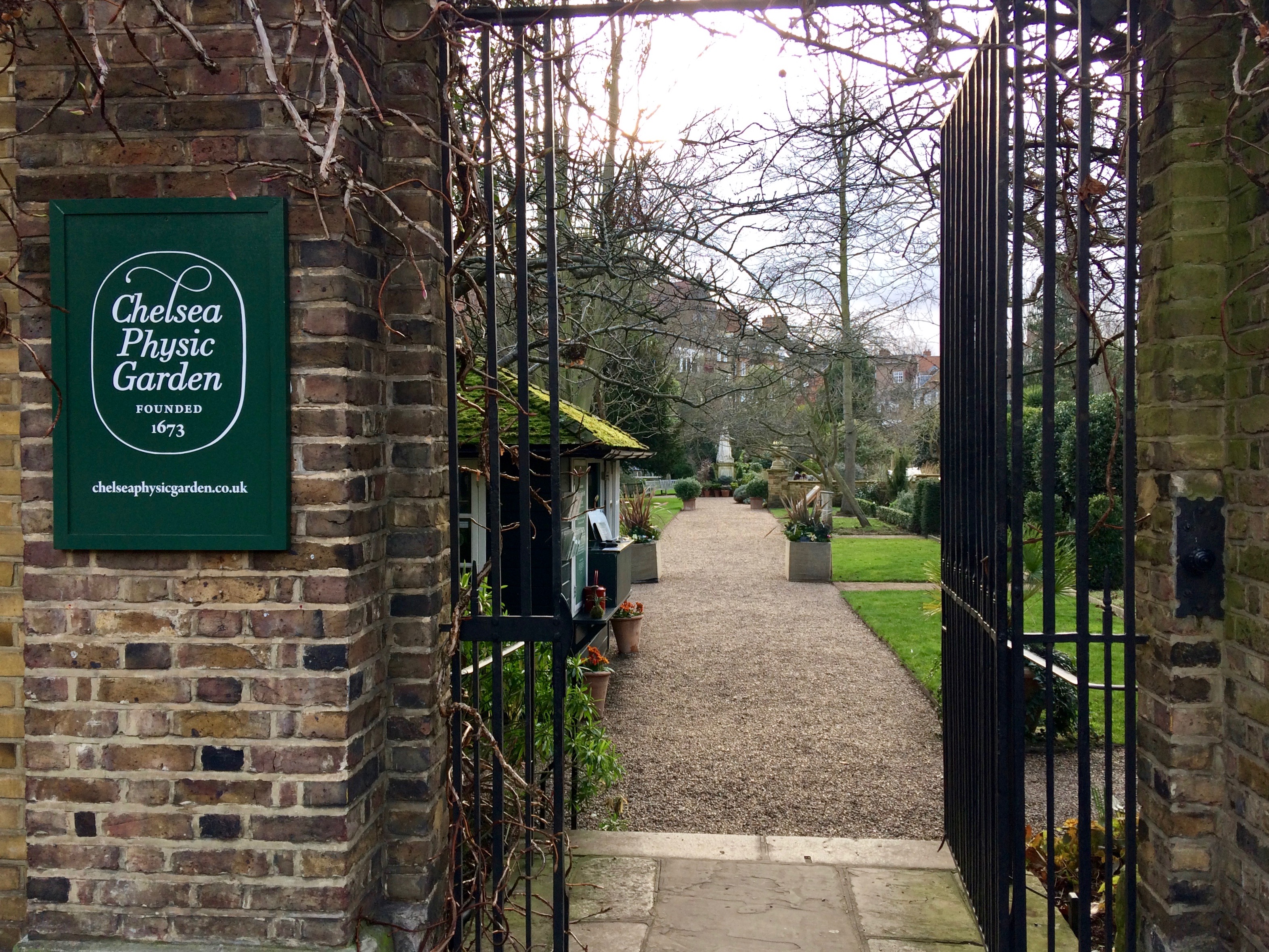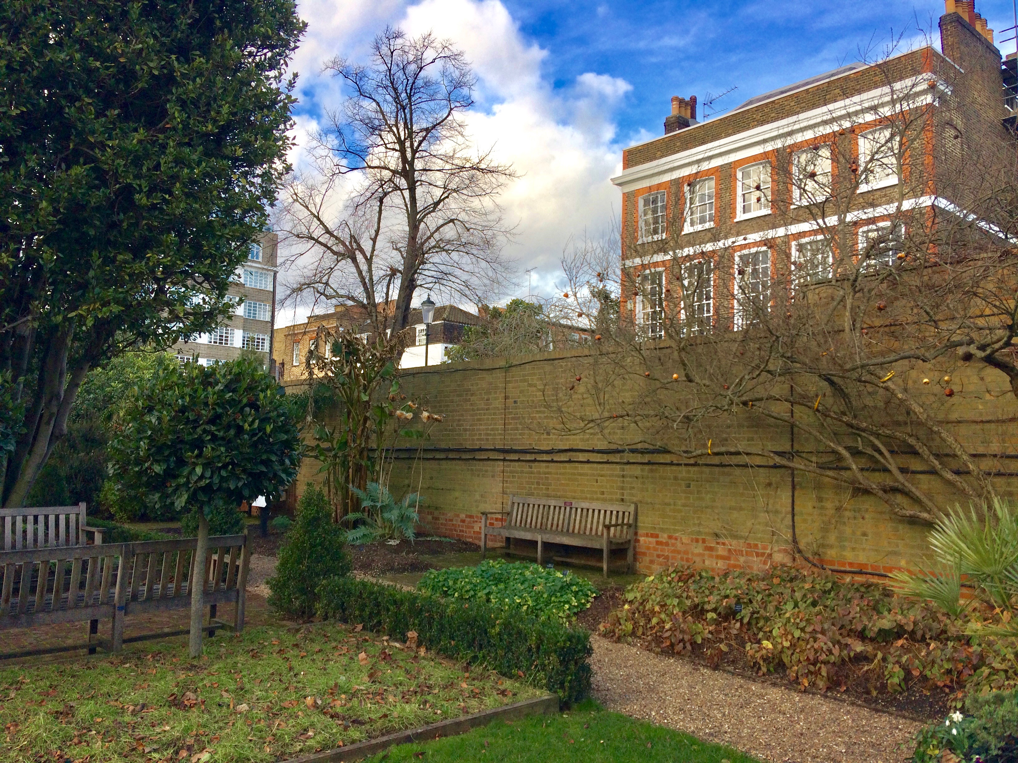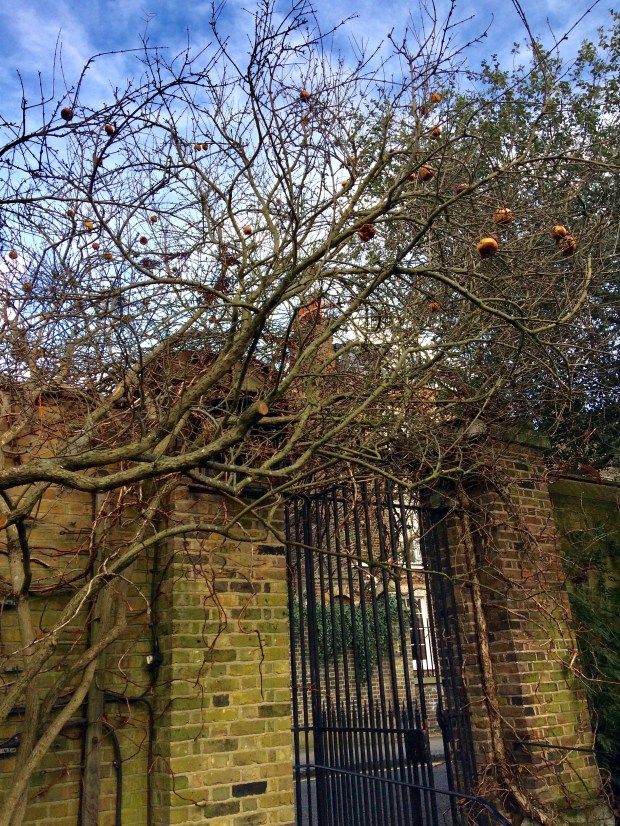 As we wander through the iron gate, an apple tree looms above, offering its crops towards the sky. It’s so quiet here, and I’m reminded that Chelsea was once a village. What a haven this once must have been ~ it still is now, especially in February when most think there isn’t much to see… Gulp in the fresh, crisp air and keep walking.